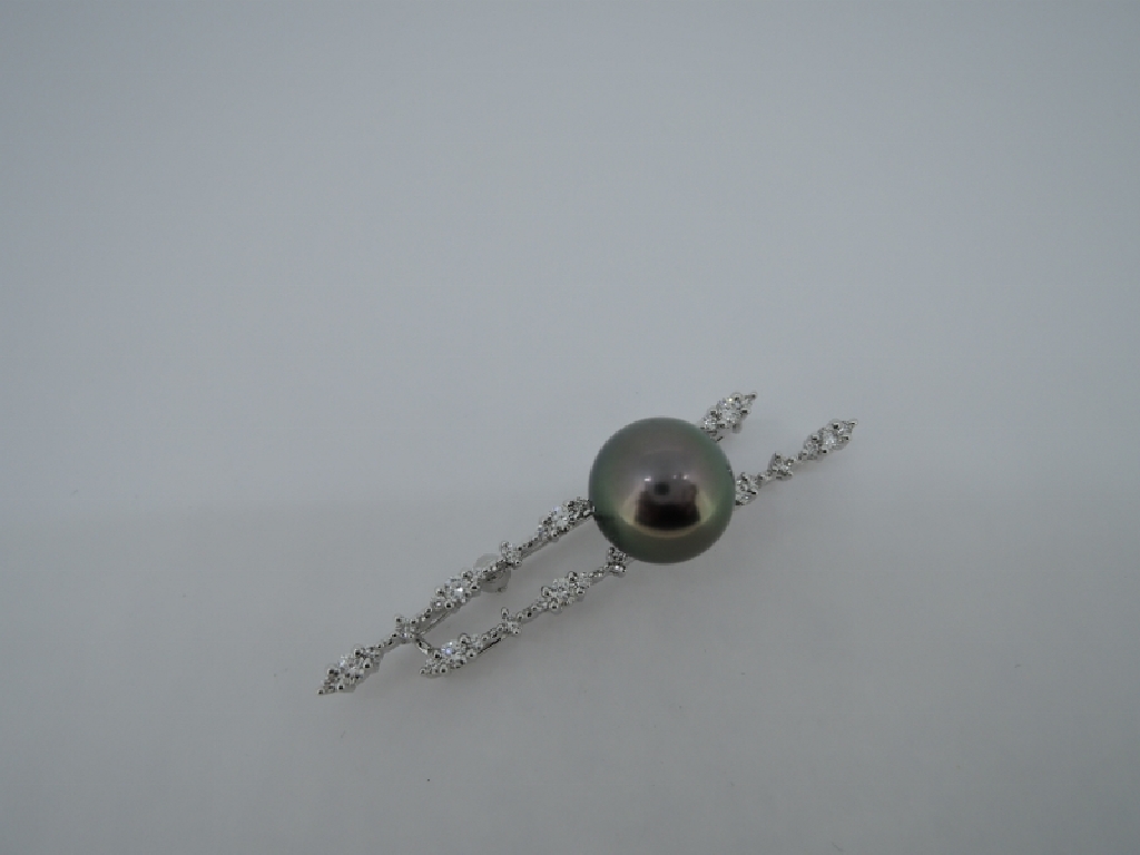 K18WG 南洋黒蝶真珠(11mm) ペンダントブローチ