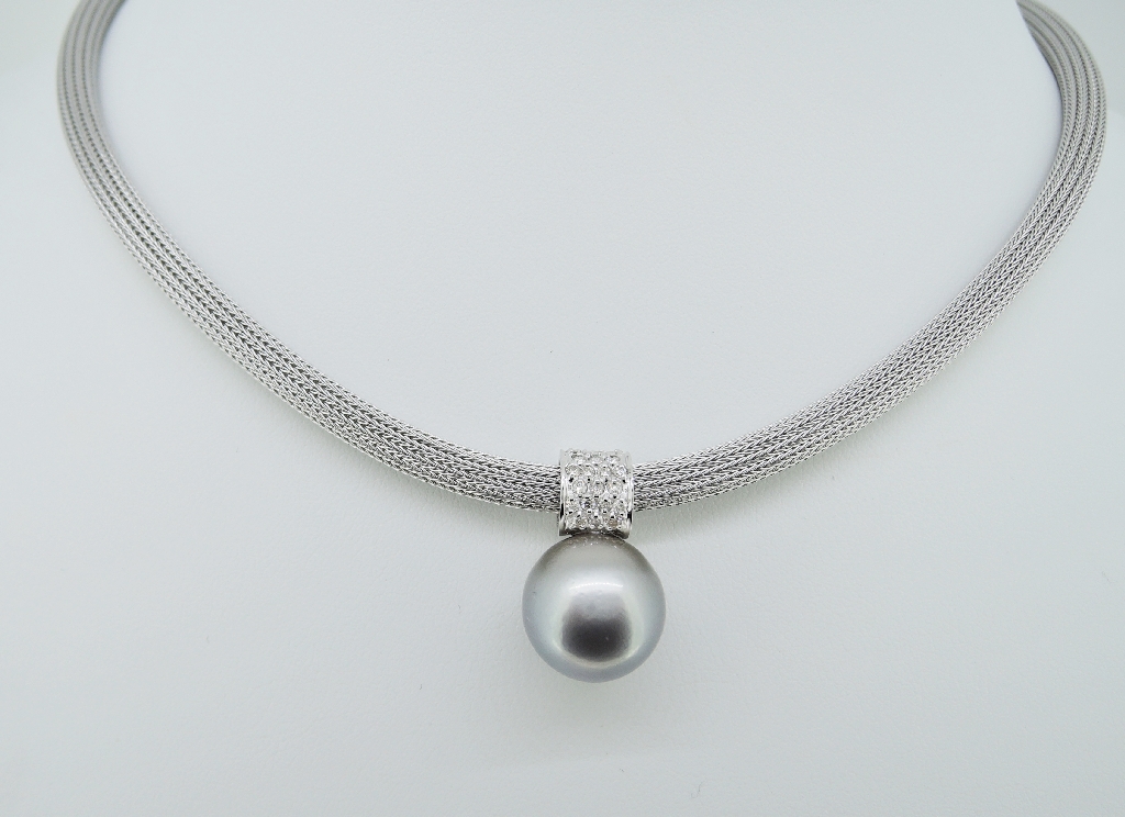 K18WG南洋タヒチ真珠ダイヤモンド(0.22ct)ペンダントネックレス
