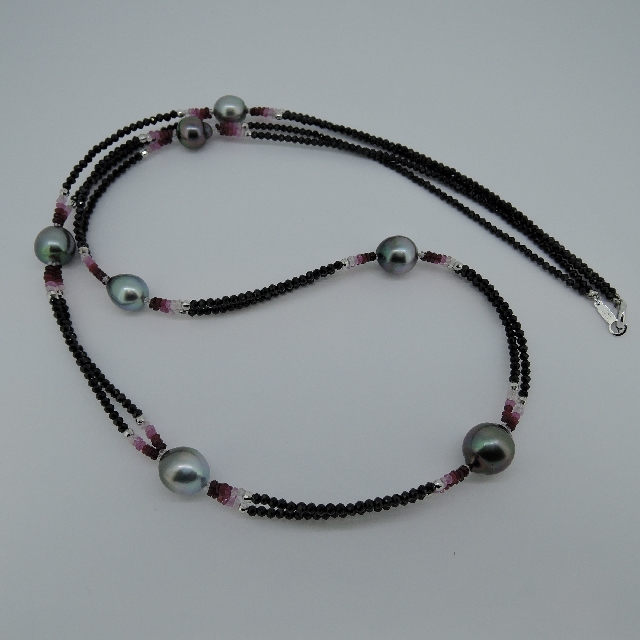 南洋タヒチ真珠・ルビ-・スピネルネックレス(70cm)