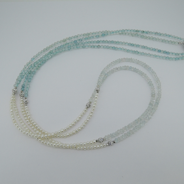 湖水パ-ル・ブル-トパ-ズ・ゥオ-ツ・スワロフスキ-ネックレス(81cm)
