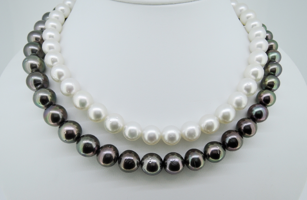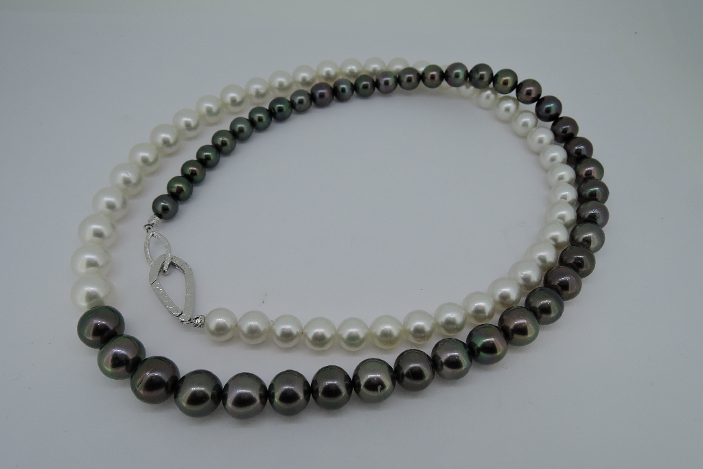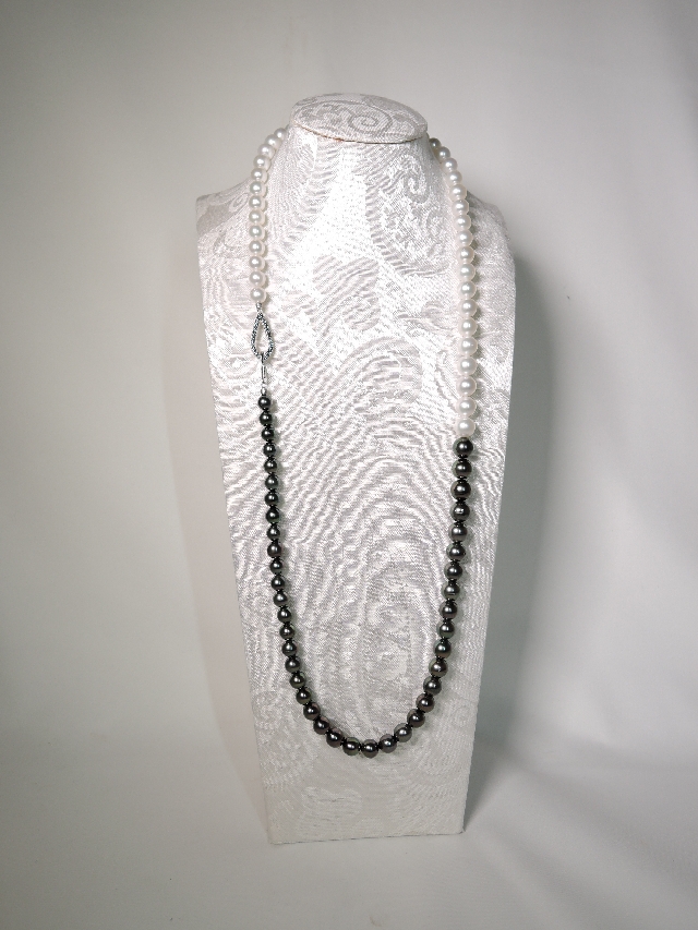 南洋黒蝶・白蝶真珠(11mm-8mm)ロングネックレス(84cm)