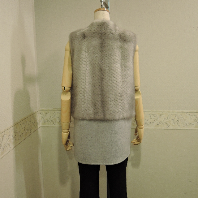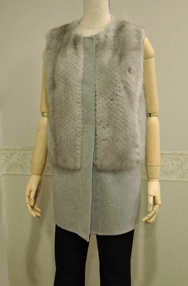 ミンク/カシミアサファイアカラ-ベスト(M、68cm丈)