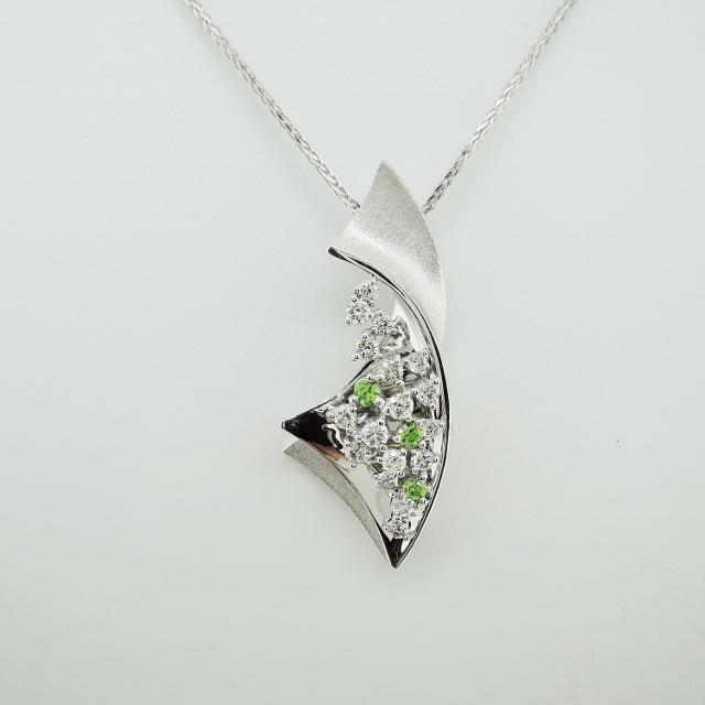 K18WGペリドット・ダイヤペンダントネックレス