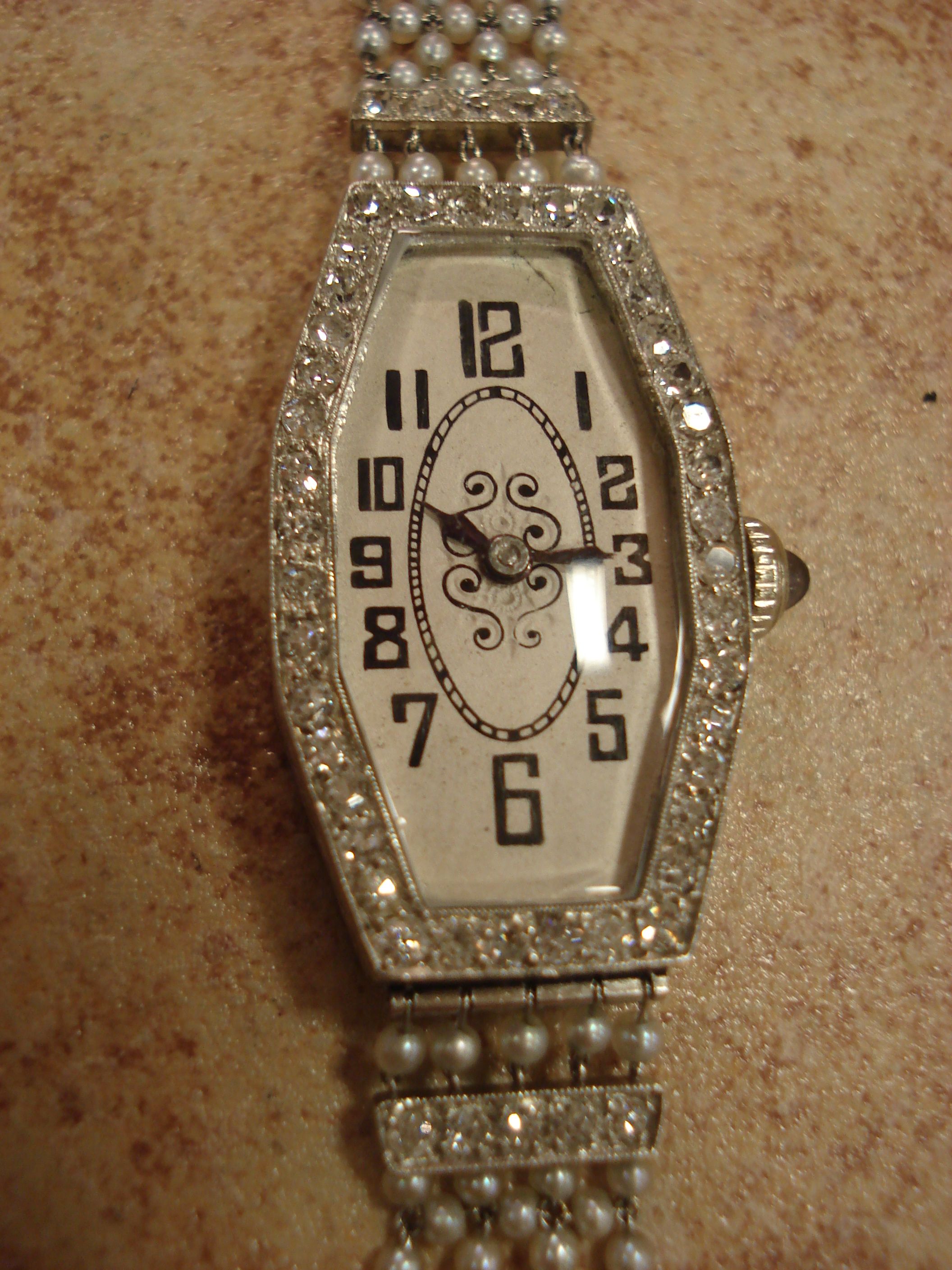 ホーム > 1920年代 プラチナダイヤモンド・サファイヤ・パール時計 (USED)