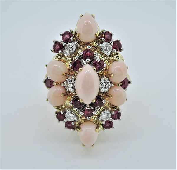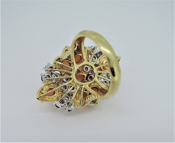 K18/PT900サンゴ石(R1.60ct D0.46ct)リング