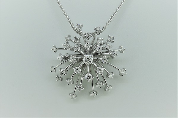 > K18WGダイヤモンド(0.77ct)ペンダントブロ-チネックレス