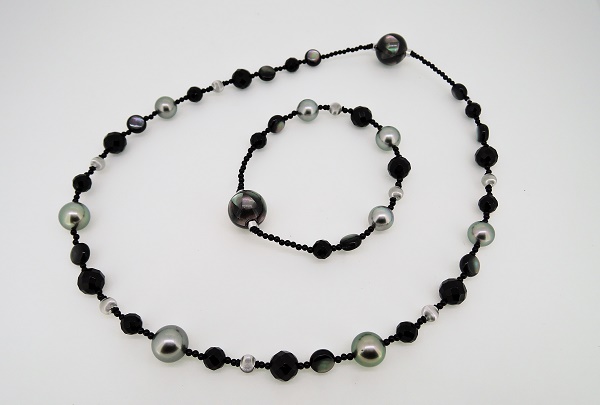 > K18WG南洋真珠オニキスネックレス&ブレス