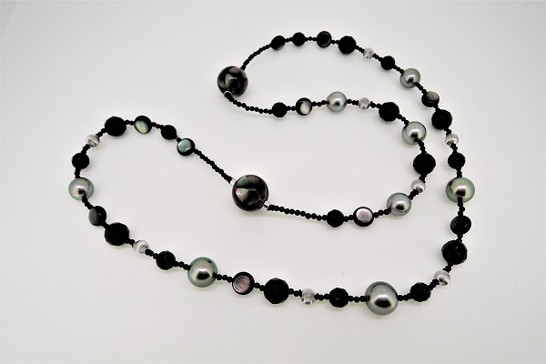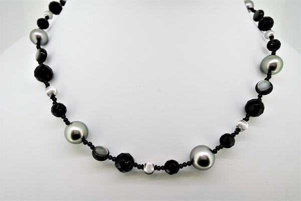 K18WG南洋真珠オニキスネックレス&ブレス