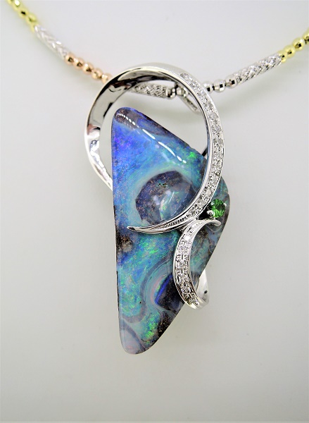 > K18/K14WGボルダ-オパ-ル(29.41.ct)ダイヤ(0.30ct)ブロ-チネックレス