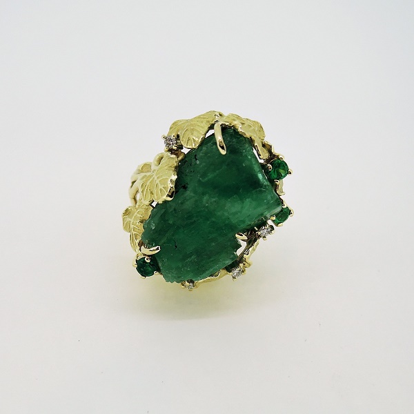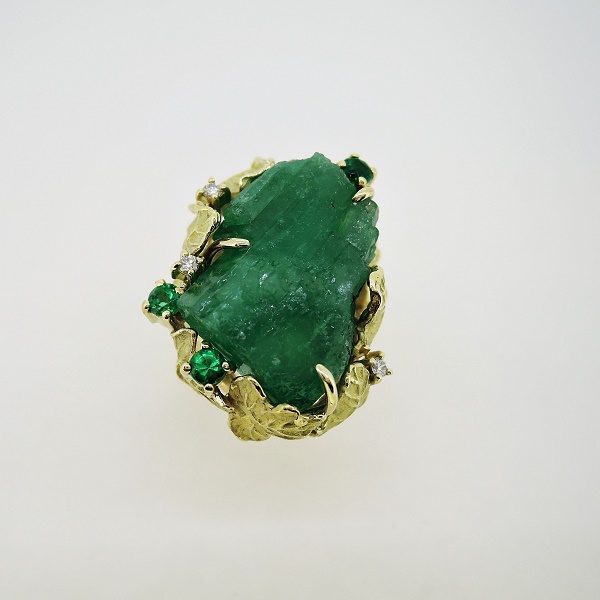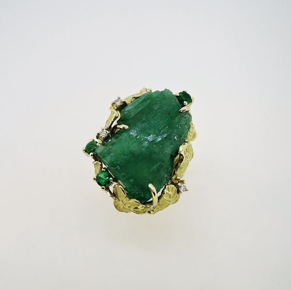 K18エメラルド・ダイヤモンドリング(E19.83ct・D0.07ct・E0.28ct)