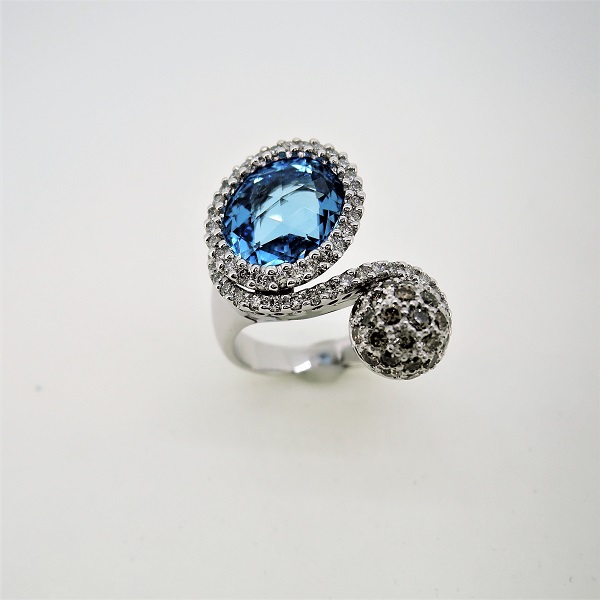 > K18WGブル-トパ-ズ(5.84ct)・ダイヤモンド(1.19ct)リング