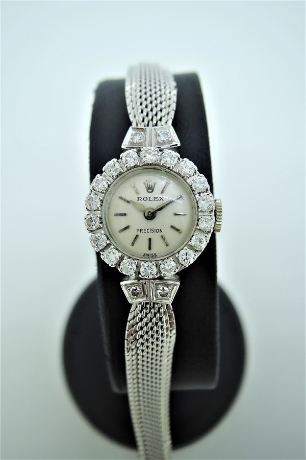 ロレックス K18WGプレシジョン手巻ベゼルダイヤモンド時計(アンティ-ク)