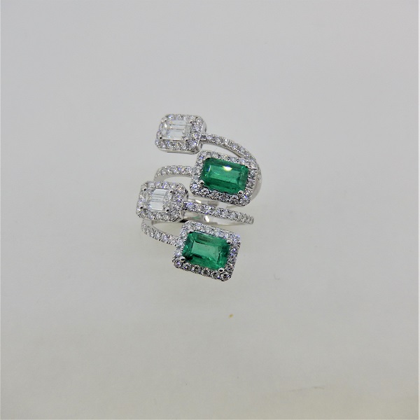 K18WGエメラルイド(2.01ct)ダイヤモンド(0.91ct E VSI 脇石1.261ct)リング