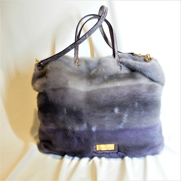 VALENTINO ミンク2WAYショルダ-バッグ(新品同様)パ-プル+グレイ