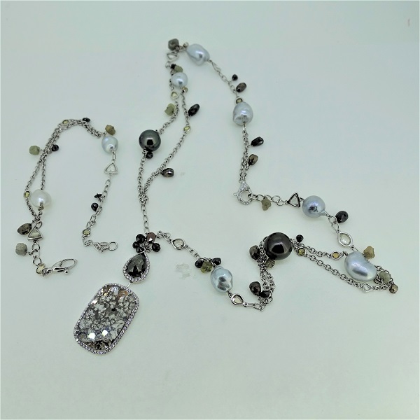 K18WGダイヤモンド(47.86ct)&パ-ルネックレス
