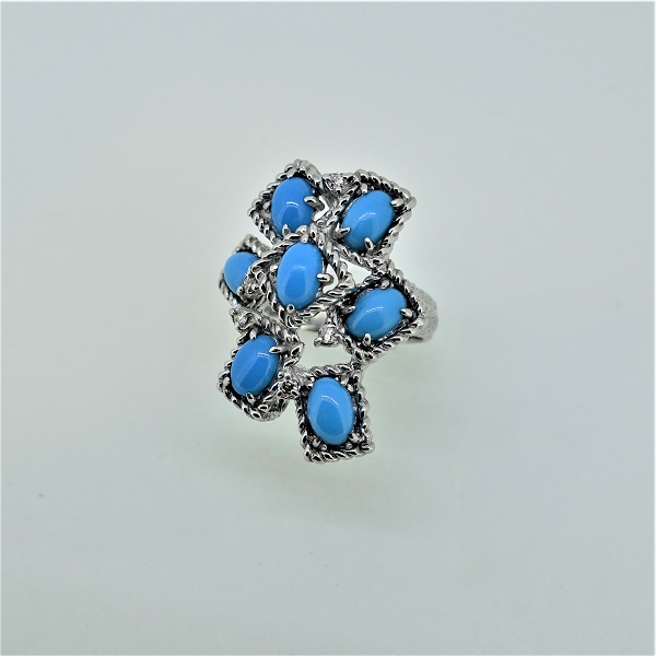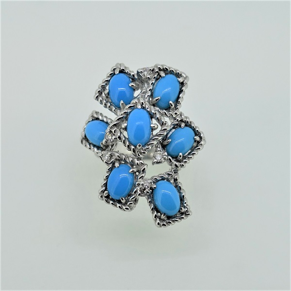 > K18WGトルコ石リング(D0.10ct)