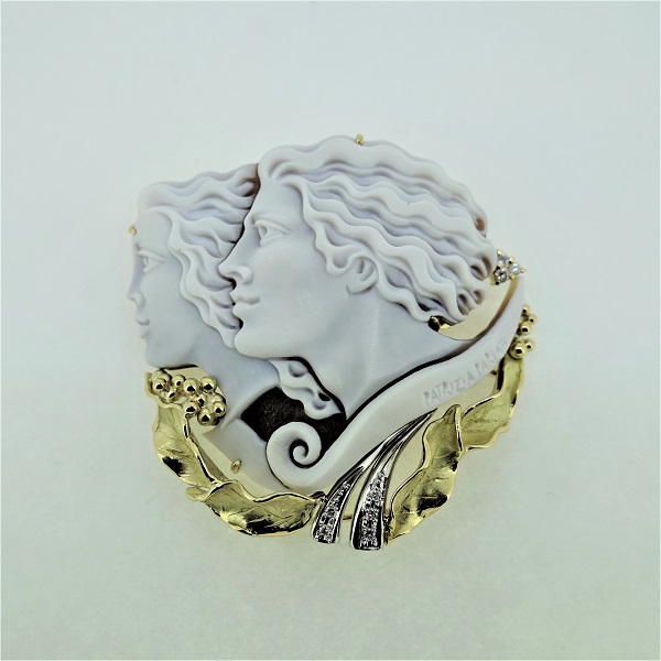 K18/Pt900シェルカメオダイヤモンド(0.11ct)ブロ-チ(パトリシアパルラ-テイ)