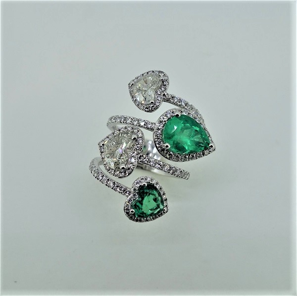 K18WGエメラルドダイヤモンドリング(E2.43,D1.51ct、D0.97ct)