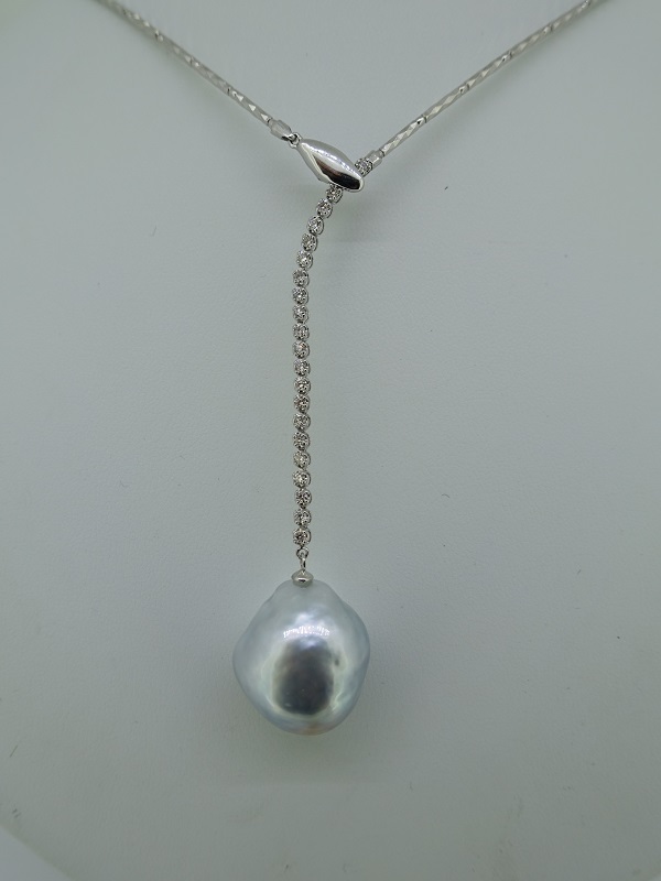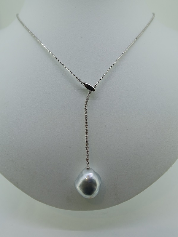 > K18WG南洋ダイヤモンドペンダントネックレス