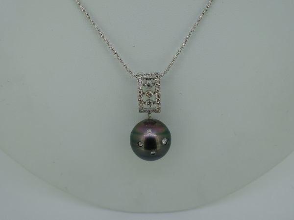 > K18WGタヒチダイヤモンドペンダントネックレス