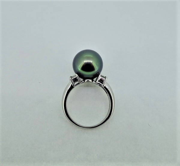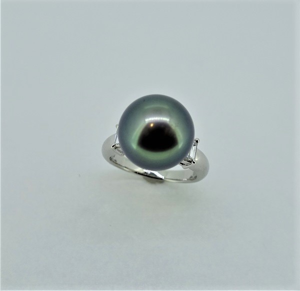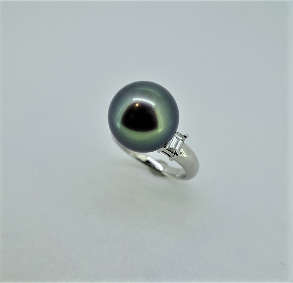 > PT南洋黒蝶真珠(13.2mm)ダイヤモンド(0.46ct)リング