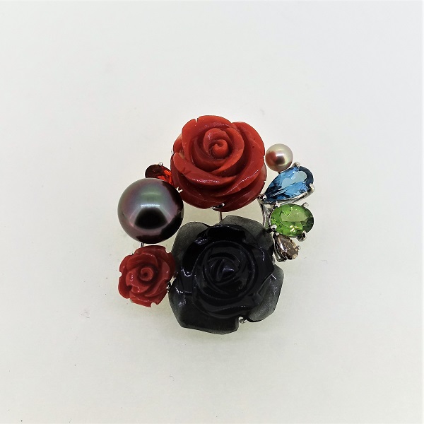> K18WGパールサンゴ色石ペンダントブロ-チ