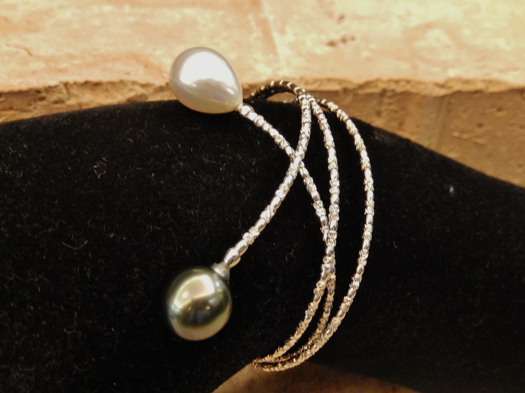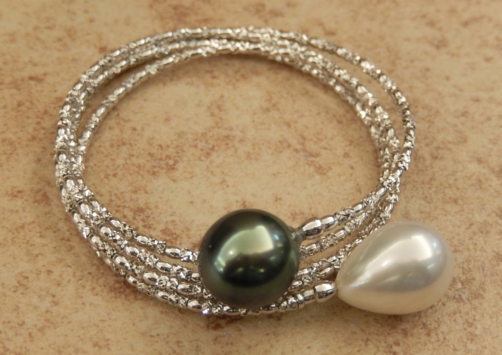 南洋真珠付K18WG形状記憶バングル