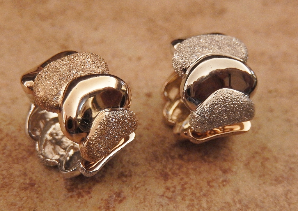 装着するとピアスのように見えて、痛くなく、落ちにくいイヤリングです。リバーシブルタイプだからバリエーションが増えます。