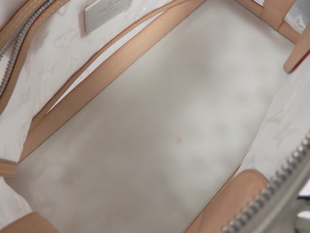 Aランク:若干使用感はありますが、程度が良い品。 持ち手の色焼けと内部底に少々汚れあり。