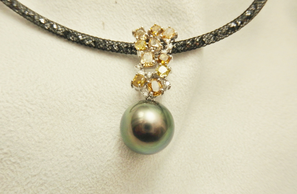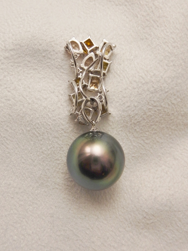 K18WG 南洋タヒチ真珠 ダイヤモンドペンダント