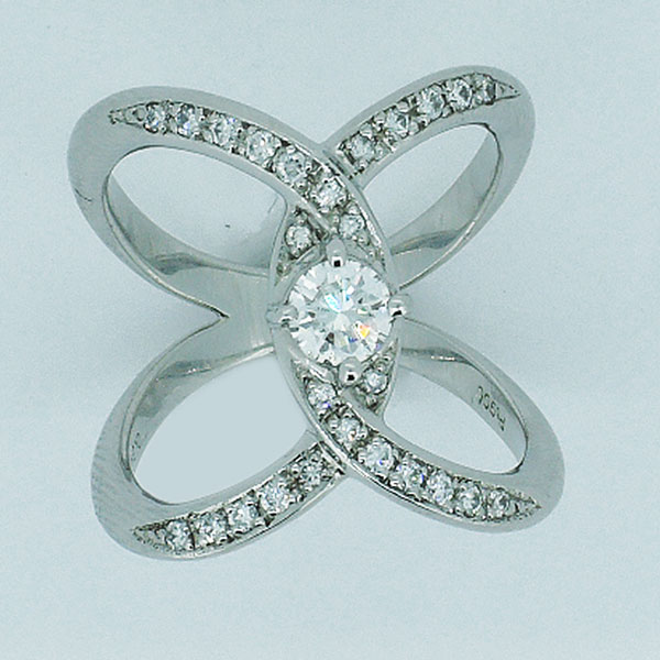 > Pt ダイヤモンド (中石0.54ct、脇石0.22ct)リング
