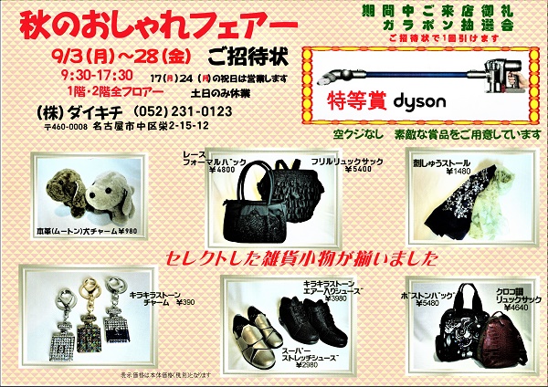 9/3(月)~28(金)秋のおしゃれフェア-開催します