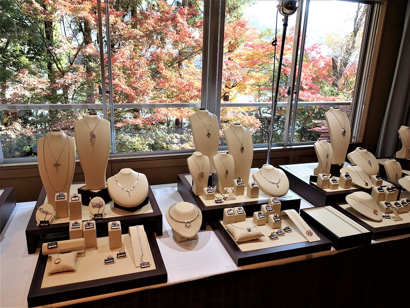 当日は快晴で温かく紅葉が美しい中 皆様美食と温泉でリラックスして頂きながら 逸品ジュエリ-との出会いを楽しんでいただきました。