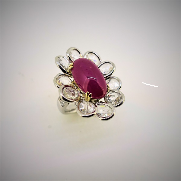 ビルマ産ルビー13ct UPに ローズカットのダイヤモンド4.28ctで