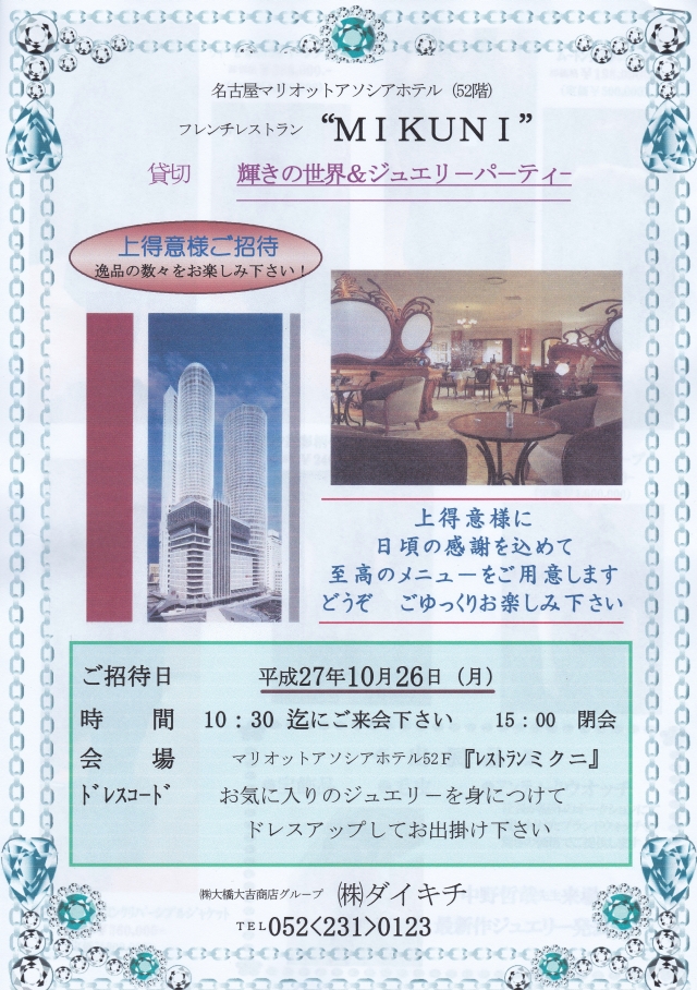 2015年 「輝きの世界&ジュエリーパーティー」開催決定