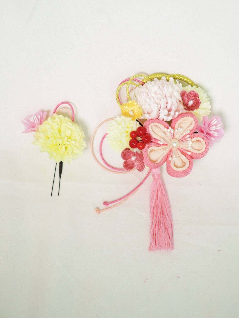 つまみ細工 ふさ付コーム&花Uピン2点セット