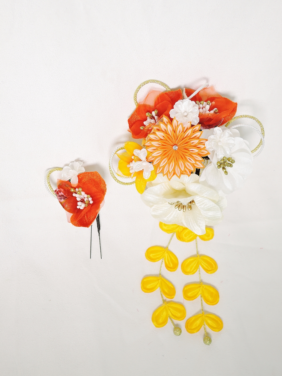 ◆サイズ 全長      約25cm      花飾り 縦   約14cm          横   約13cm          さがり 約14cm      Uピン 縦   約 6cm          横   約 5cm