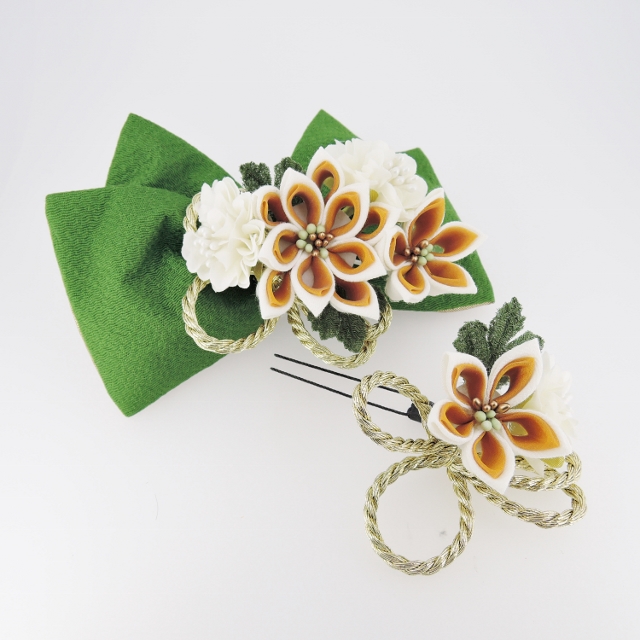 リボン 15cm×8cm コーム たて5cm×横4cm ミニフラワー 7cm×8cm Uピン 5cm