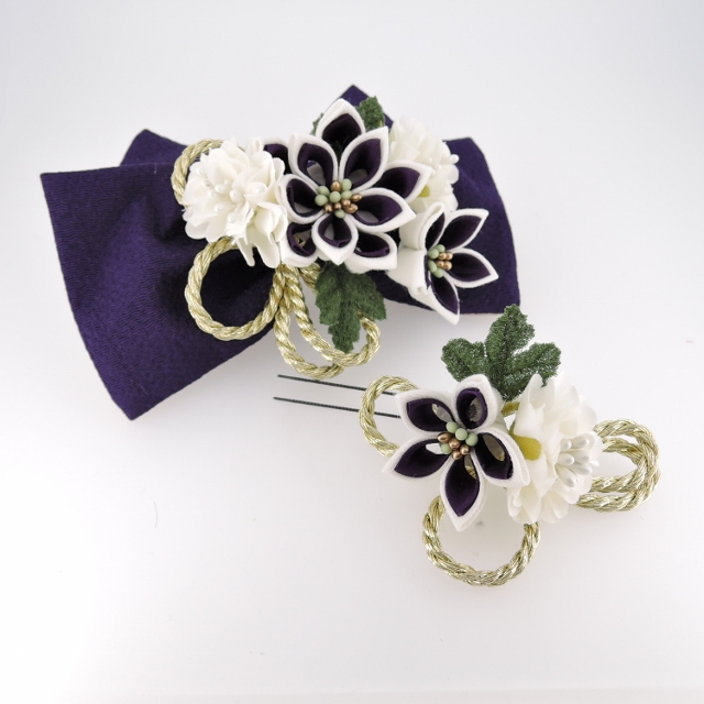 リボン 15cm×8cm コーム たて5cm×横4cm ミニフラワー 7cm×8cm Uピン 5cm