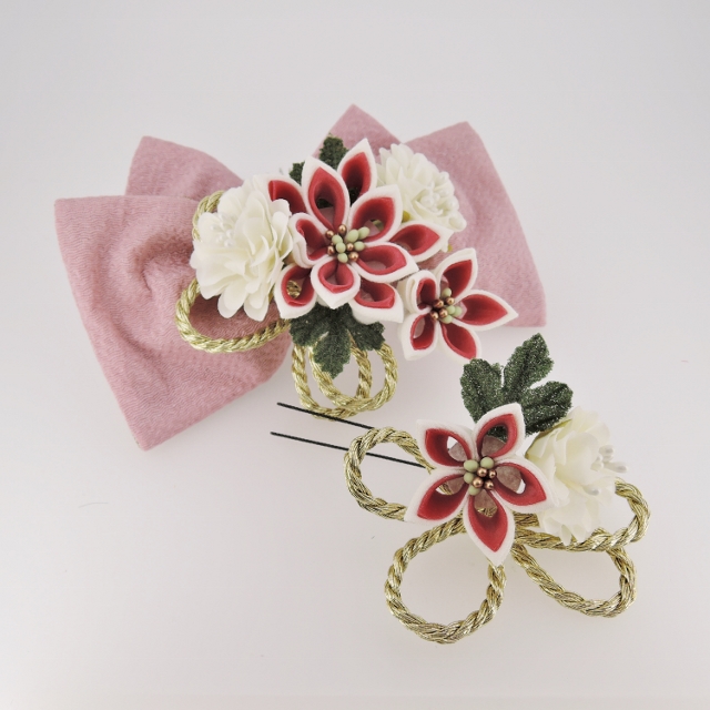 リボン 15cm×8cm コーム たて5cm×横4cm ミニフラワー 7cm×8cm Uピン 5cm