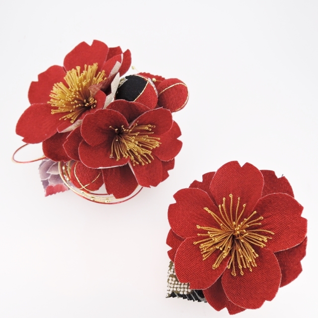 さくら ちりめんフラワ-コ-ム&ミニフラワーセット 赤