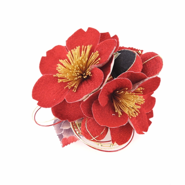 > さくら ちりめんフラワ-コ-ム&ミニフラワーセット 赤