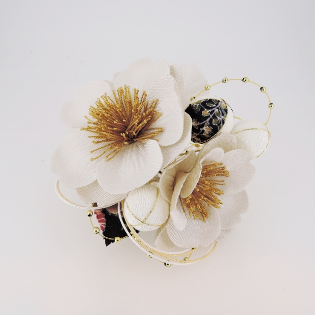 さくら ちりめんフラワ-コ-ム&ミニフラワーセット 白