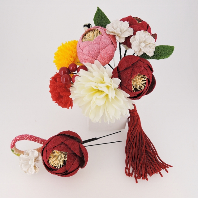 ホーム > つまみ細工つばき・菊フラワ-コ-ムふさ下がり&ミニフラワーセット