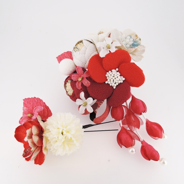 つまみ細工つばきフラワ-コ-ム花下がり&ミニフラワーセット