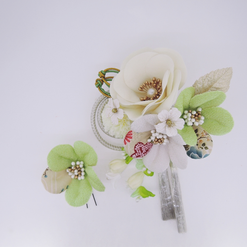 フラワ-コ-ム&ミニフラワ-2点セット グリ-ン