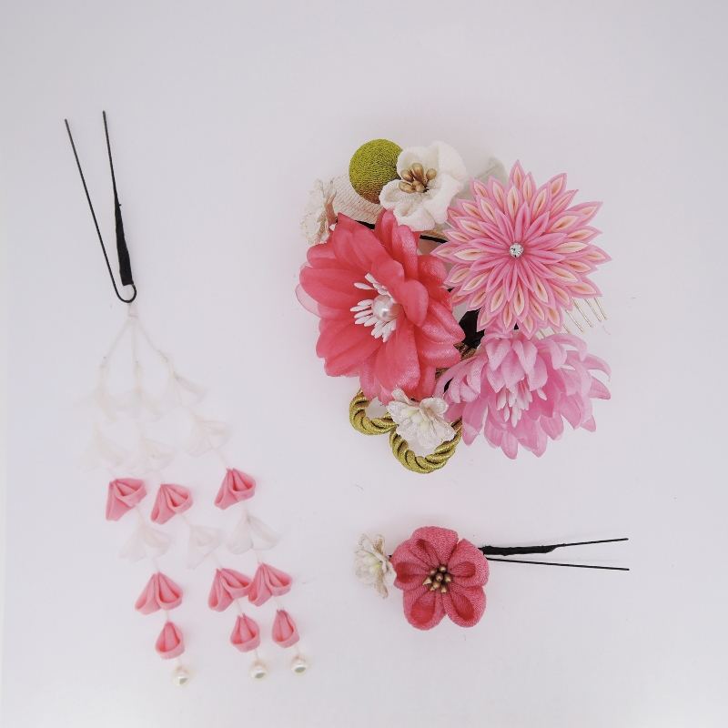 > フラワ-コ-ム&ミニフラワ-3点セット ピンク