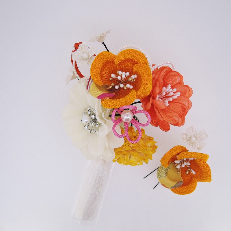 > フラワ-コ-ム&ミニフラワ-2点セット オレンジ