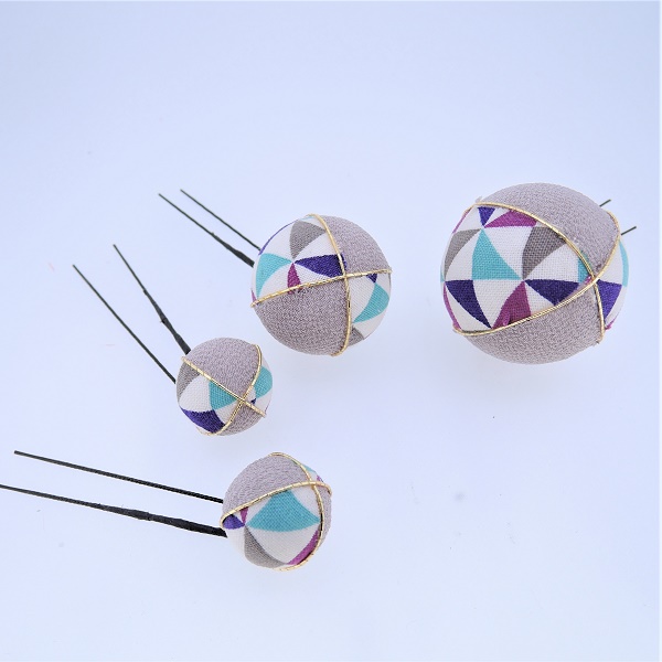 つまみ細工ミニUピン4点セット グレ-