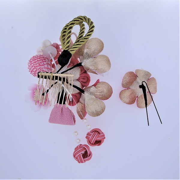 > フラワーコーム&ミニフラワー2点セット ピンク